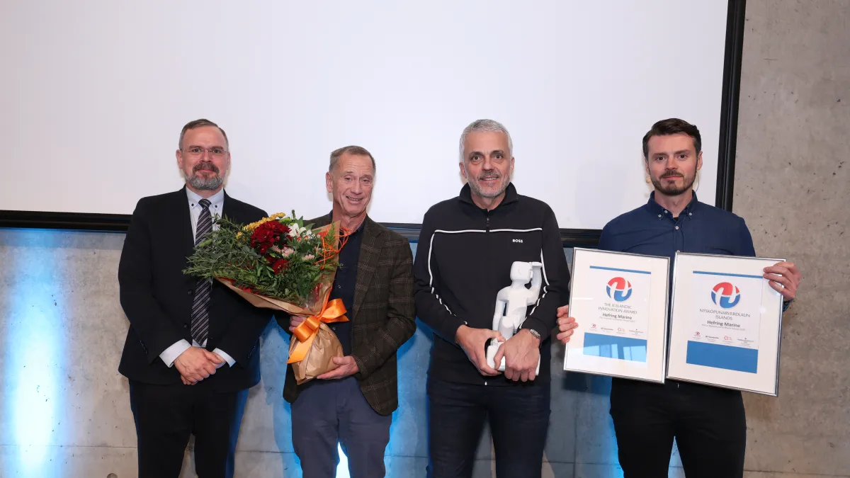 Hefring Marine has been awarded the Icelandic Innovation Award 2025 for developing and commercialising its intelligent marine assistance system, IMAS®, which uses artificial intelligence and real-time data to improve safety, fuel efficiency, and vessel operations. The award was presented in Reykjavik today at the Iceland Innovation Congress, at Gróska innovation hub. Karl Birgir Björnsson, CEO and co-founder of Hefring Marine, accepted the award on behalf of the company from Daði Már Kristófersson, Minister of Finance and Economic Affairs.