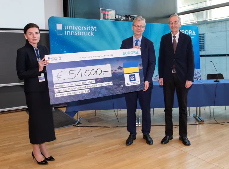 Tilmann Märk, Rector of the University of Innsbruck and Jón Atli Benediktsson, Rector of the University of Iceland and President of Aurora, spoke at the opening of the conference. The war in Ukraine and its impact on students and staff of the National V.N. Karazin University in Kharkiv, an associate Aurora partner, was a major focus in both addresses. The university's rector, Tetyana Kaganovska, attended the conference in person despite the dangerous circumstances and gave a presentation in which she explained the consequences of the war on the university and how its staff have tried to continue teaching under incredibly difficult circumstances. Tetyana also accepted emergency financial support from the University of Iceland and other Aurora universities amounting to 51,000 euros to meet the university's most urgent needs, such as the purchase of new computers and equipment for teachers to conduct online teaching. You can read here a formal statement from Tetyana Kaganovska about her participation in the Aurora Spring Biannual Conference.