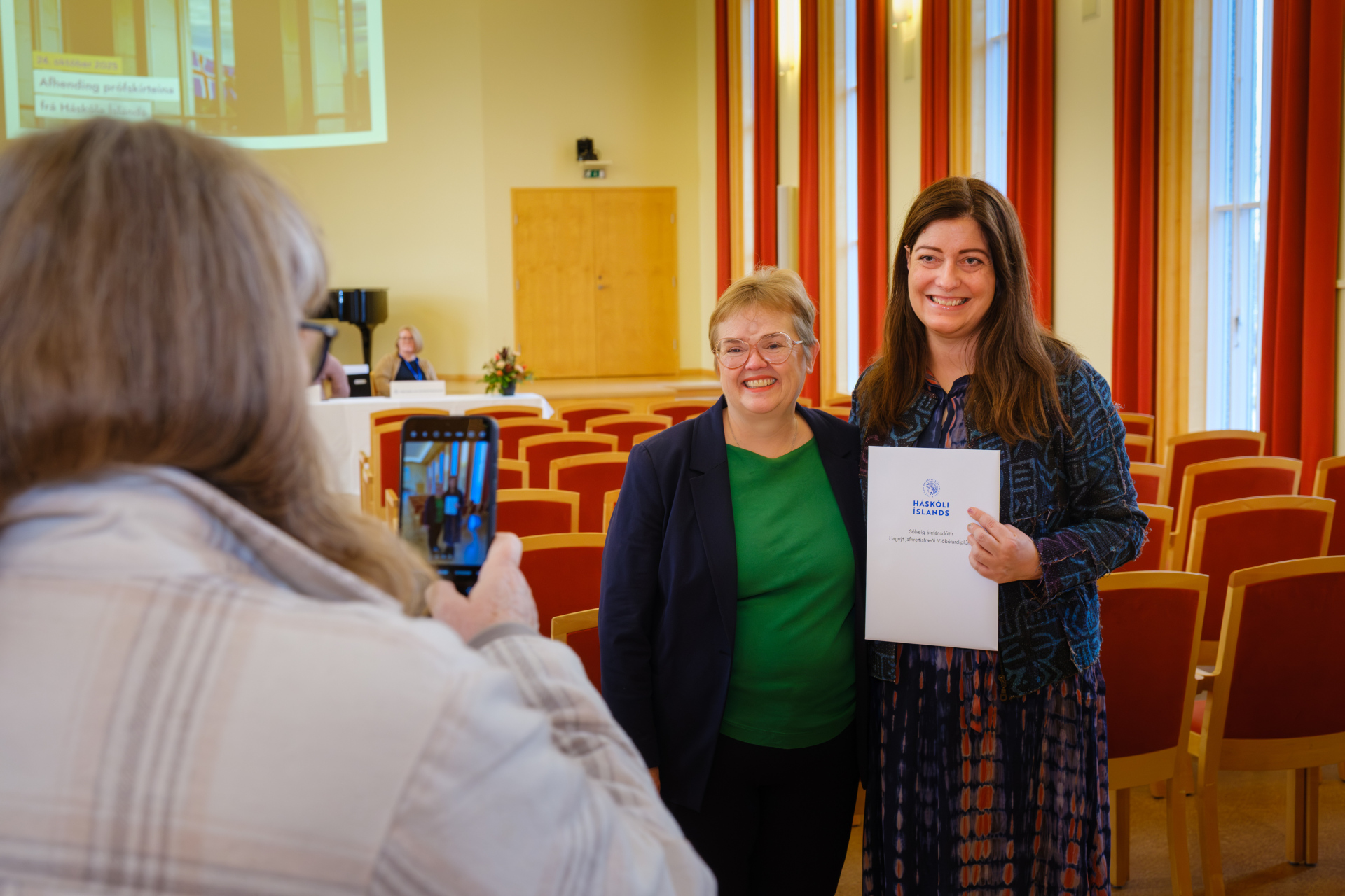 A large number of people visited the Main Building of the University of Iceland today to collect their degree certificates at the University´s third graduation this year. This time, 216 candidates graduated from both undergraduate and graduate studies.