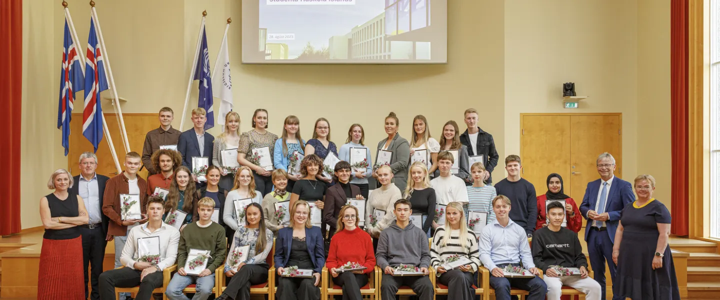 Thirty-four new students at the University of Iceland were awarded grants from the Student Achievement and Incentive Fund in a ceremony in the Aula today. The recipients come from all over the country and are now starting on 24 different study programmes.