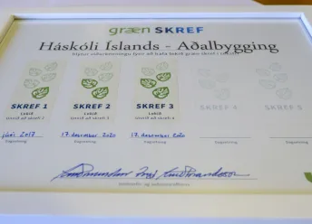 The University of Iceland has received recognition for the Environment Agency of Iceland for having implemented three out of five steps in the Green Steps programme for public organisations.